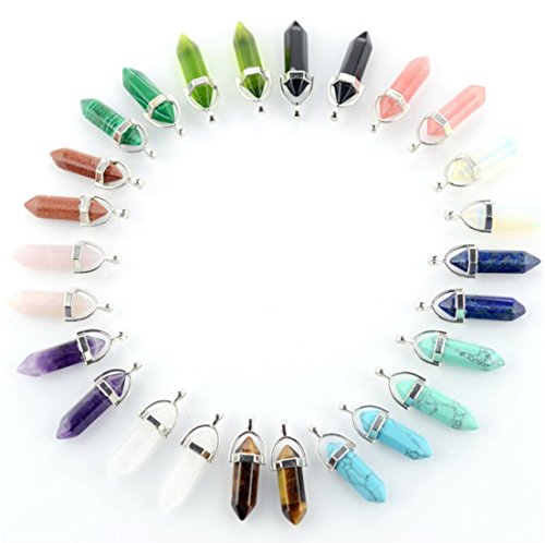 25 Pcs Multicolor Gemstone Bullet Shape Healing Pointed Chakra Beads Crystal Quartz Stone Randow Color Pendants for Necklace Jewelry Making