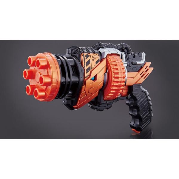 タイトル   百発連射 DXホークガトリンガーJAN/EAN: 4549660195351メーカー:バンダイ仮面ライダービルドがホークガトリングフォーム時に使用する銃型武器。リボルバー回転で弾丸装填。100連射攻撃を放て!