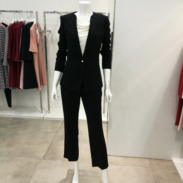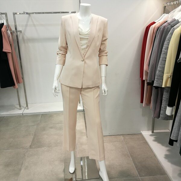 정장셋트바지임. 한벌로 코디하면 세련되고 따로따로 언발란스하게입어도 스타일이 고급스럽다.바지는 약간 넉넉하게 나왔음.
