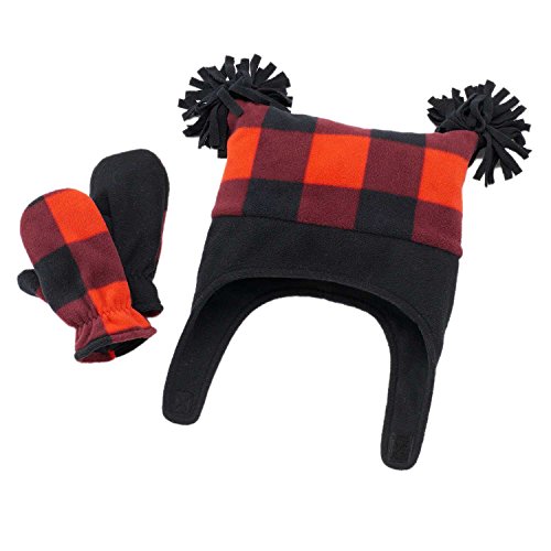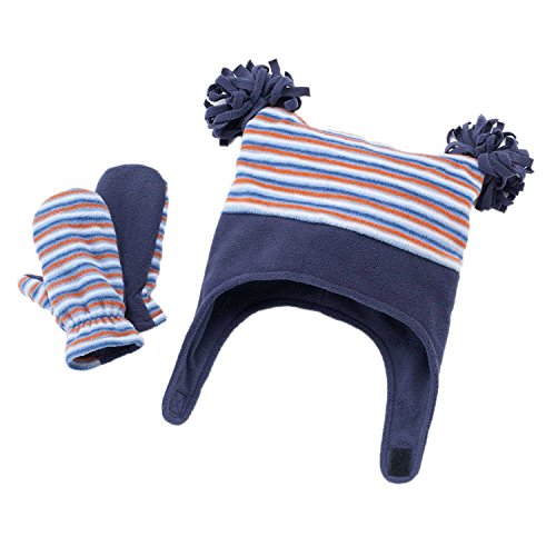 Binding : Apparel Product Description Bundle him up with this adorable toddler boys' fleece hat and mittens set by Jumping Beans. This cozy hat features ear flaps, velcro chin strap and frilly poms. Coordinating mittens are cinched at the wrist to keep out the cold. 100% Polyester, machine washable. Size 2T-4T. 0