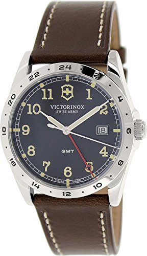 -. Title : Victorinox Infantry GMT Black Dial Brown Leather Strap Mens Watch 241648