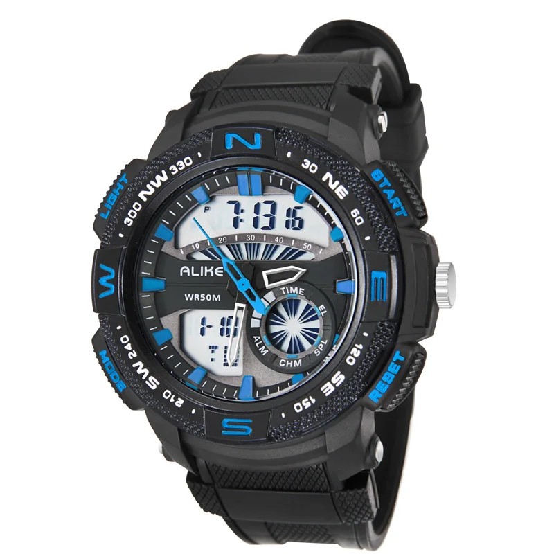 Feature:Water Resistant,LED display,Multiple Time Zone,Stop Watch,Back Light,Shock Resistant,Diver,Chronograph,Auto Date,Alarm,Swim,Repeater