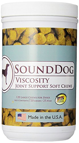Sound Dog Viscosity is a glucosamine based formula that aids in joint support by maintaining the normal viscosity of joint fluid. This formula also contains Chondroitin, MSM, HA, and Herbs to better address all aspects of joint support, making it the most complete joint supplement available In contrast to Herbsmith Soothe Joints, which slows the release of dehydrolyzing enzymes that break down joint fluid, Sound Dog Viscosity works to maintain thick and viscous joint fluid. Use both formulas together for optimal joint support most comprehensive joint support supplement includes glucosamine, chondriotin, hyaluronic acid, MSM, AND herbs available in a soft chew for easy administration made in the U.S.A.Feature