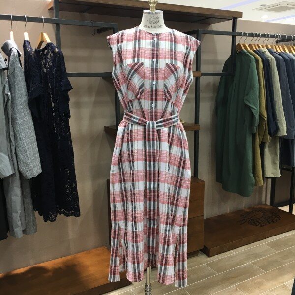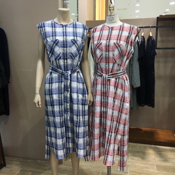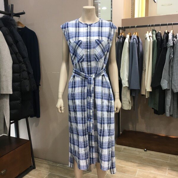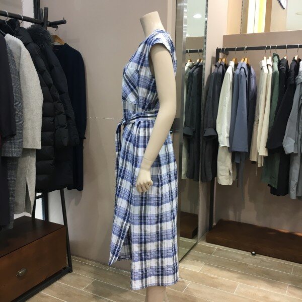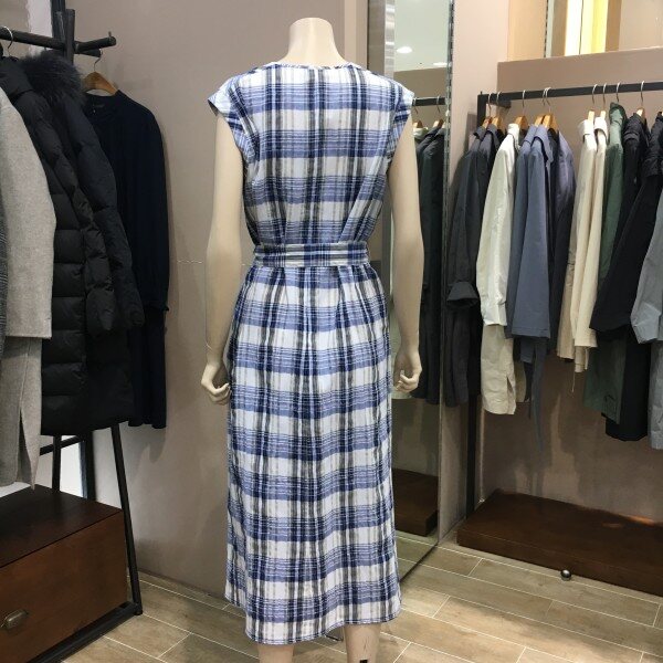 로맨틱하고 클랙식한 무드의 체크 민소매 원피스에요:) 과하지 않은 체크패턴으로 데일리하게 입으실 수 있구, 색상이 시원하여 여름 느낌을 물씬납니다. 롱한 기장감으로 체형커버는 당연하고 허리 부분 끈으로 내 몸에 맞고 조절가능하니 취향대로 편안하게 착용 가능해요 - 소매 부분은 완전 민소매라기 보다 살짝 더 나온 느낌이라 전체적인 팔 라인 또한 여리여리하게 보여줍니다. 민소매 부담스러우신분들 가디건과 입으시면 정말 안성맞춤이에요. 총장길이는 55사이즈 기준으로 118.5cm 입니다