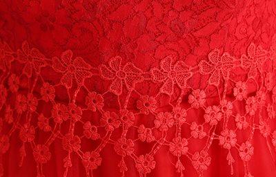 トップスとウエスト切り替えの刺繍レースが華やかさをプラス。