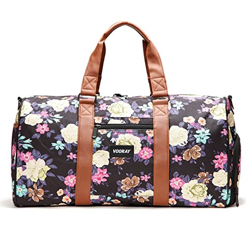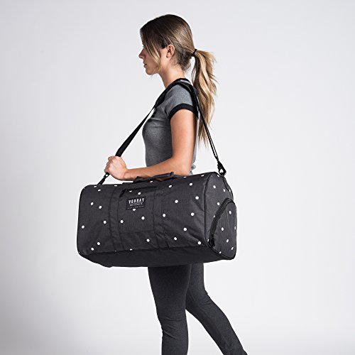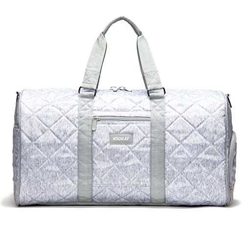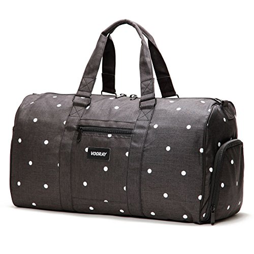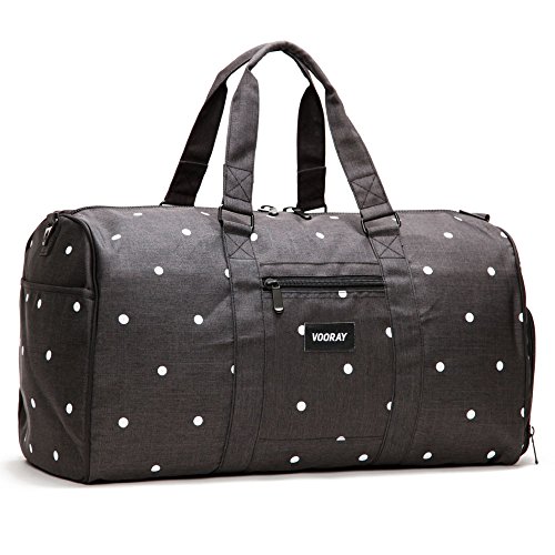 Dimensions: 21" x 10.5" x 12". Volume: Weight: 2.85 lbs. The Trepic's classic and spacious design makes it an ideal weekender travel duffle for men and women. Its water-resistant polyester exterior and reinforced nylon interior keep your gear protected from the elements, and its zip-enclosed side shoe pocket allows you to separate shoes or soiled apparel from the rest of your bag contents. The Trepic also includes two zip-enclosed interior pockets and a front exterior zip pocket. The bag comes with a Vooray nylon laundry bag and a padded shoulder strap.Feature