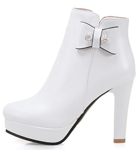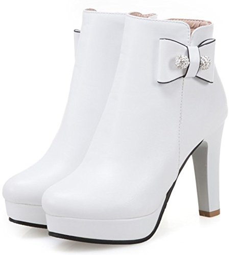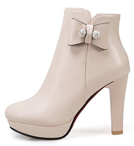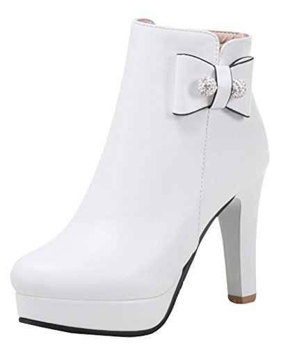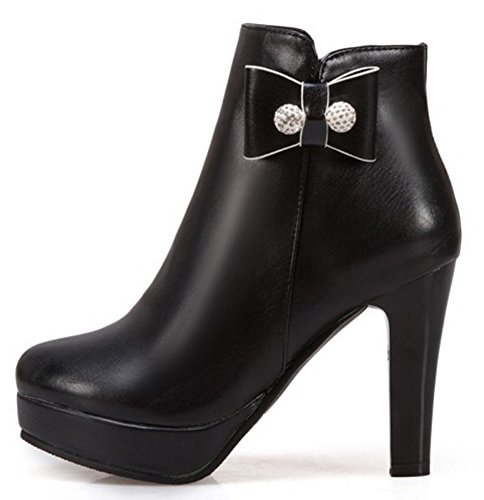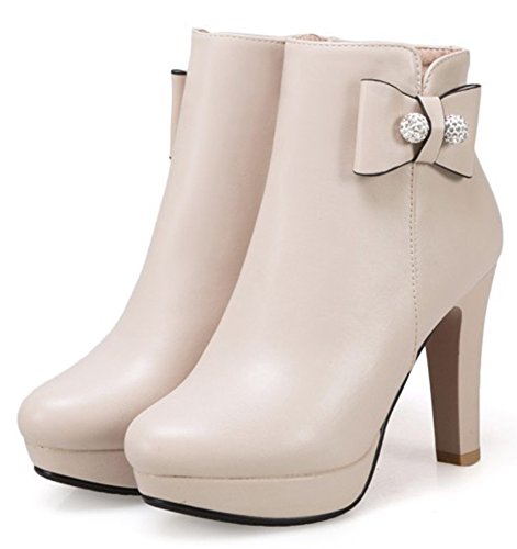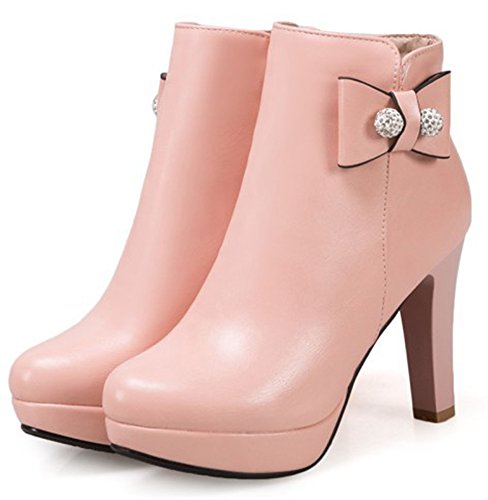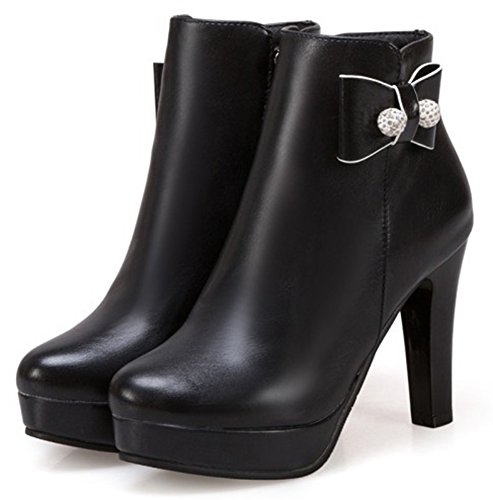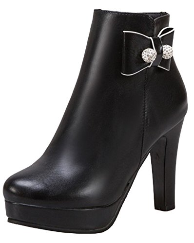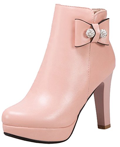 Binding : Apparel Product Description This pair of shoes is for women, girls, juniors and young ladies. You will look chic and stylish when wearing them. The heels measure 3.9 inches. You will feel comfy in their high block heels. This pair of shoes features ankle high and solid waterproof upper. You will look sweet in their round toe and bow and beads design. Its simple classic design will offer you an extravagant simplicity. It's convenient for you to wear in their inside zipper closure design. The sole is made of good rubber. You will feel comfortable in their soft bottom. You can wear them to the office, school and shopping mall. They are of high quality and durable. We promise we will provide our customer with the best quality and lowest price. Your pleasant shopping experience is our eternal pursuit. Waiting for your coming! 0