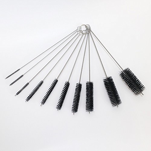 1. 10 pieces nylon tube brushes, different diameters from 2mm to 24mm, you can always find a fit tool when cleaning gaps. 2. Suitable for drink straw, bottles, keyboards, jewelry and small nozzles, etc. 3. easy to get into hard-to-reach spaces, and no more remaining dust in your life. 4. convenient loop at the end of the handle to hang when not in use or to reattach to the key ring for safe keeping.