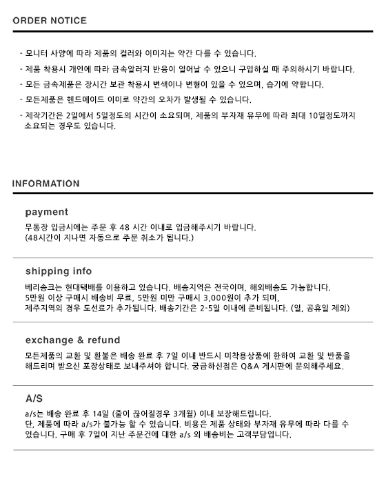 [교환 및 배송 안내] - 제작기간은 주문일로부터 3~4일이 소요됩니다. (영업일 기준) - 베리송크의 모든 제품은 주문제작상품으로 교환 및 환불이 어려우니 신중한 구매 부탁드립니다. - 제품 하자 시에는 동일한 제품으로 교환 가능하며, 받으신 포장상태 그대로 반송 부탁드립니다.