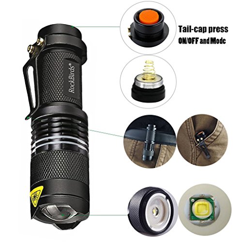 Bright High Powered Flashlight: XML-T6 Chip Offer 300 Lumens (Max Output); Rockbirds Led Flashlight is High-end Version with Optimized Aluminum Alloy and 20% brighter than Most Ordinary Flashlight