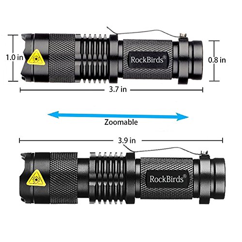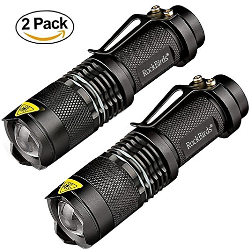 LED Flashlight Rockbirds A100 Mini High Lumens Zoomable Super Bright 3 Mode Tactical Flashlight, Best Tools for Hiking, Hunting, Fishing and Camping (2 Pack)