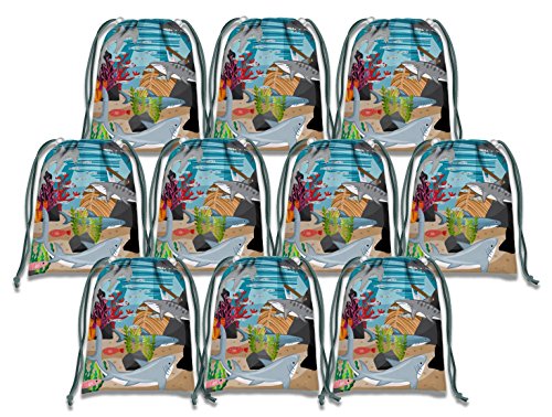 (Birthday Galore)/Accessories/Luggage, Bags Travel/DIRECT FROM USA/Shark Drawstring Bags Kids Birthday Party Supplies Favor Bags 10 Pack