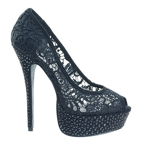 Binding : Apparel Product Description About This Shoes :These dress shoes features a peep toe opening, high platform, thing high heel, classic dress pump construction, see through woven crochet fabric and pyramid studded detail. Brand - Aquapillar Colors Available: Black Occasion: Formal Shoe Type: Platforms Wedges Shoe Style: Platforms Wedges Inner Lining: synthetic Heel Height In Inches - 6 Heel Style - Stiletto Toe Style - peep-toe Platform Height In Inches - 1.5 Shaft Height In Inches - Circumference Opening - Strap Type - strapless Sole - manmade All Man Made Material unless otherwise stated. Computer/Phone/Table monitors might show color differently because of its quality or calibration, we suggest you look at the photo in at least 3 monitors if you need exact color match of your shoes. 0