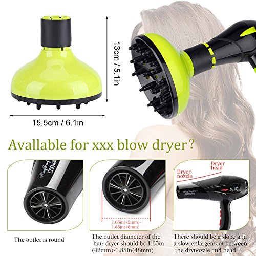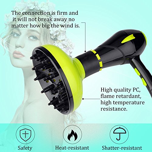 【PERFECT DESIGN, NO MORE SCRATCH AFTER EACH HAIR WASHING】With 360 degree rotating and 18 cone teeth deep in the hair, Fdit diffuser gives you evenly distributed heat, allows you to have a more natural curl without scratching.