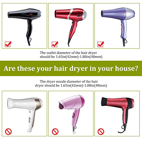 【WIDE APPLICABILITY】Adjustable Elastic rubber diameter design can adapt to over 90% different designs of hair blower in the market. Suitable for hair dryers with nozzle diameter: 1.65 inches - 1.88 inch