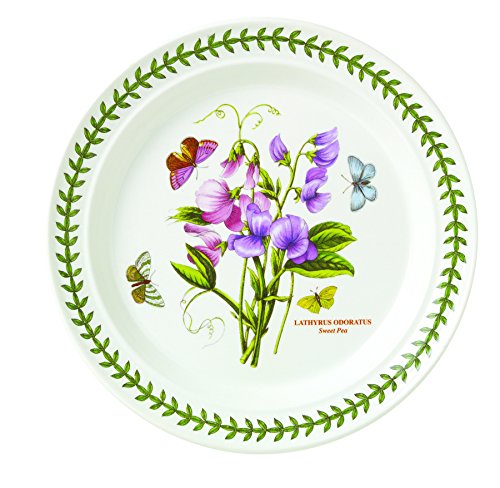 Amazon.com Review Inspired by 19th-century botanical illustrations, Portmeirion Botanic Garden dinnerware features a lush array of hand-painted blossoms. The pieces are perfect for a mix-and-match sensibility and suitable for year-round dining. Made in Britain from high-quality porcelain, they are safe in the oven, freezer, microwave, and dishwasher. Executed with incredible detail, these Botanic Garden dinner plates display the pattern’s floral images in graceful variation. Each piece features a different central illustration of a flower surrounded by butterflies on the wing. The vibrant drawings are labeled with the flowers' Latin and common names and bordered with a wreath of laurel leaves on the slanted rim. The set includes six plates in all, featuring a clematis, a peony, a lily, a Christmas rose, a magnolia, and an azalea. Each plate measures 10-1/2 inches in diameter. --Emily Bedard 0