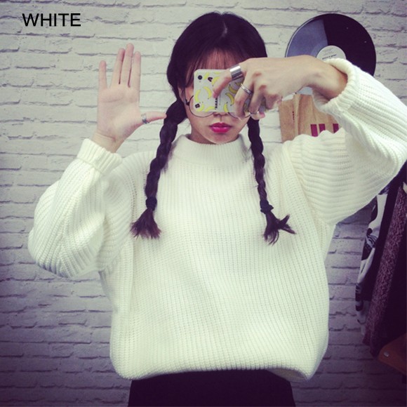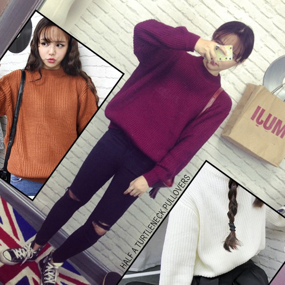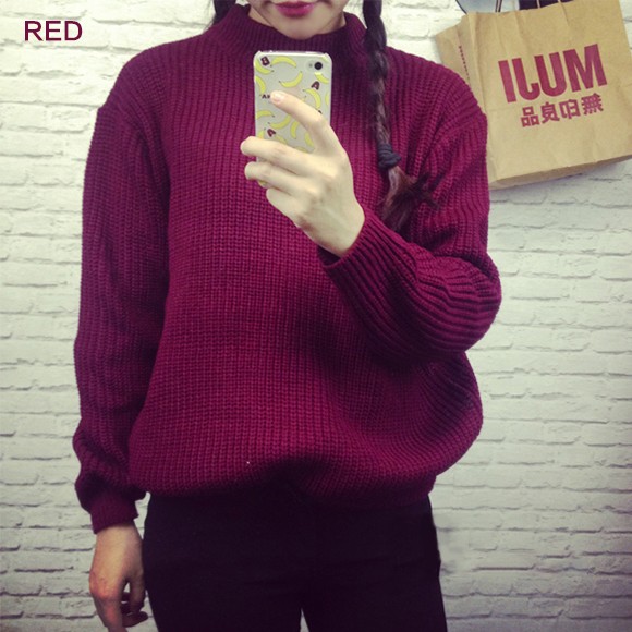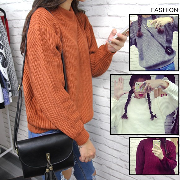 レディース用畦編みニットです☆プチハイネックでトレンド感あり♪ゆったり目デザインなので細身のボトムスと合わせればスタイルアップ効果も◎シンプルなデザインで着回し抜群のニットトップスです☆【サイズ詳細】サイズ:フリーサイズバスト:約80-100cm 肩幅:約46cm 袖丈:約52cm 衣丈:約60cm素材:アクリル