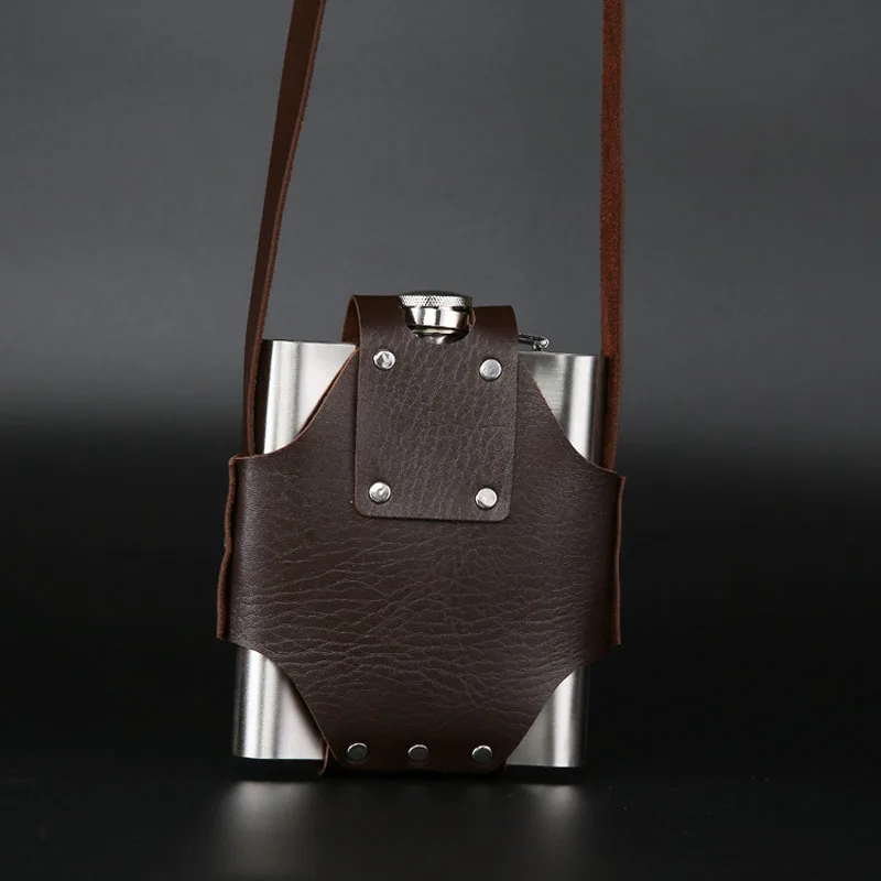 Name:18oz thick leather stainless steel hip flask