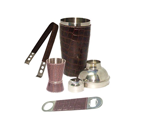-. Title : King International 100% Stainless Steel Premium Leather Bar Set | Bar Tools | Bar Accessories | Combo of 4 Pieces(Cocktail shaker | Jigger 4.4 cm 3060 ml | Ice Tong 16.5 cm and Opener 14 cm )