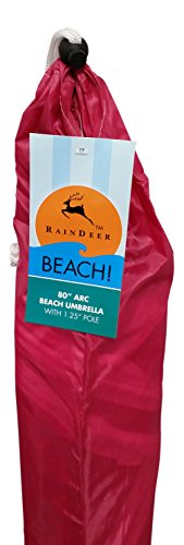 -. Feature : Raindeer Beach Umbrella has a Large 80" arc / Extra Strong Metal Pole 1.25" Diameter / Beautiful Material / Carrying case / 3 inch Valence