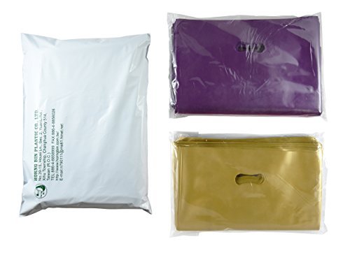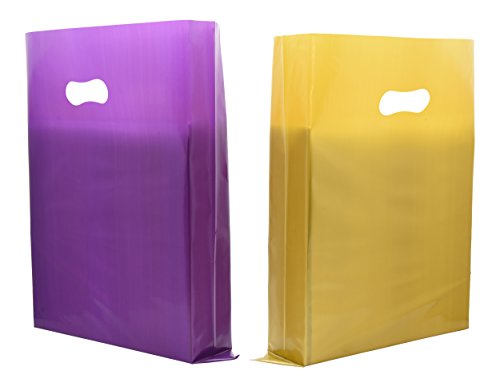 Horng Bin 200 Merchandise Bags with D2W(biodegradable plastic bags) 12x15 Golden and Purple Merchandise Bags, 2.25 Mil, LDPE Reusable Shopping Bags with Die Cut Handle