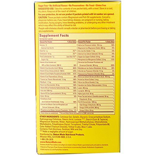 - Feature : For People with Pre-Diabetes & Diabetes / Multivitamin Fish Oil with Vitamin D / Package Quantity: 30 Packets, 6 Supplements Per Packet / Dimensions: 4.5 x 3.2 x 5.8 in, 0.45 lbs (0.2 kg) / Expiration Date: Aug 2016