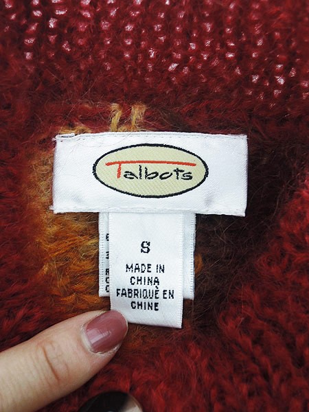 Ladies ブランドTalbots タルボット カラー赤・ボルドー・オレンジ系・茶系 メール便不可 コンディション★★★ モデル- 素材モヘア68%・アクリル32% 表記サイズS 実寸サイズ 着丈 59 cm 身幅 49 cm 肩幅 40 cm 袖丈 56 cm ※ウエスト・ヒップ以外は平置き採寸