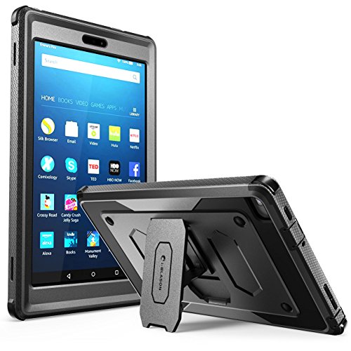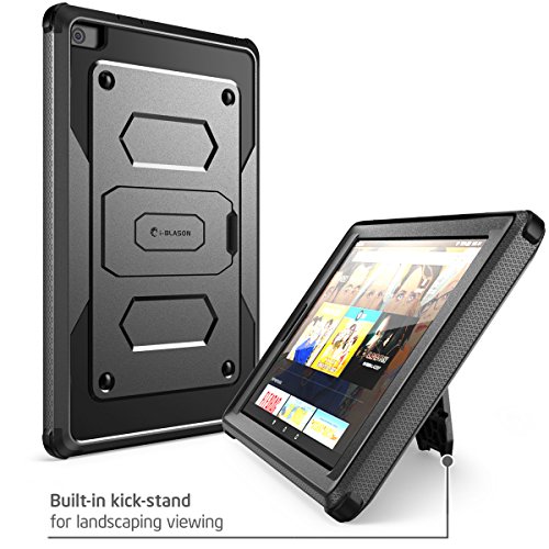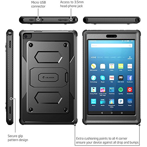 Fire HD 8 Case, [Heavy Duty] i-Blason Fire HD 8 2016 6th Generation Armorbox [Dual Layer] Hybrid Full-body Protective Kickstand Compatible Case with Front Cover and Build in Screen Protector (Black)
