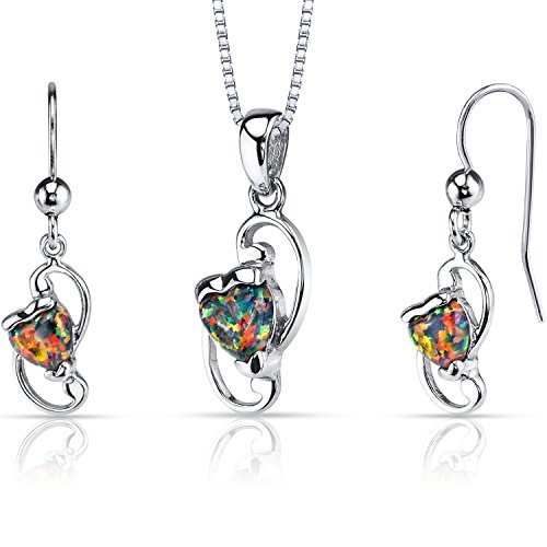-. Title : Created Black Opal Heart Pendant Earrings Necklace Sterling Silver 2.00 Carats