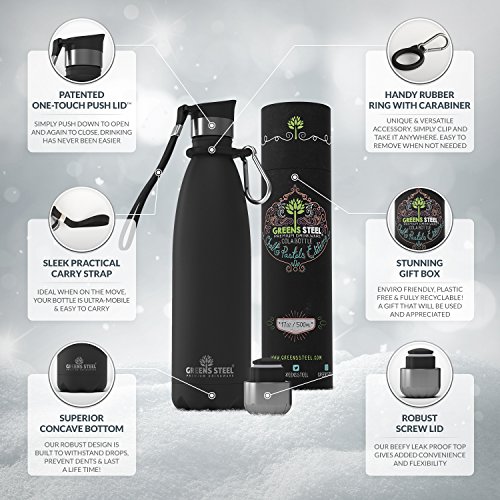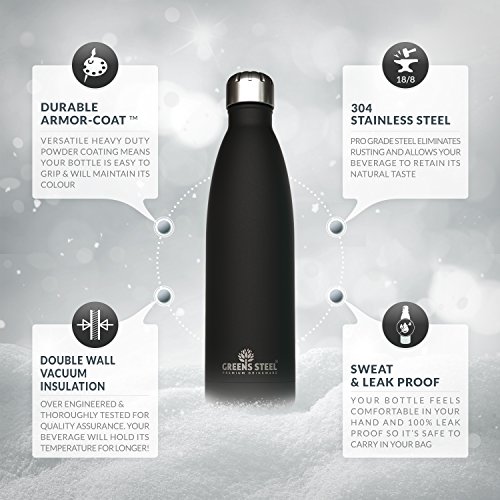 ❄ OTHER BOTTLES NOT KEEPING YOUR DRINK COLD? Greens Steel bottles are built to last you a lifetime. We use the latest double wall vacuum insulated technology to ensure maximum temperature retention! Say goodbye to lukewarm.