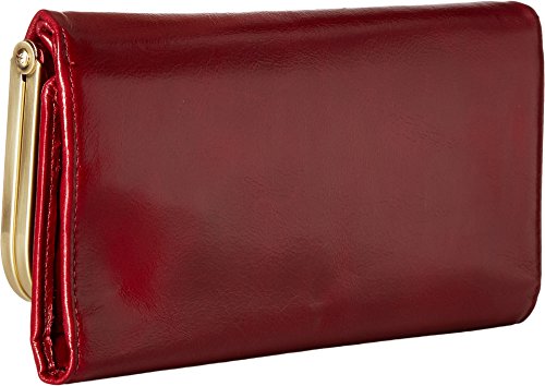 Studio : Hobo Publisher : Hobo Binding : Accessory Product Description Superbly mixing class and function, this beautiful Rachel Clutch Wallet by Hobo transitions perfectly from day to night! Hobo is all about making stylish yet purposeful women's leather accessories and this wallet is no different. This clutch is made from top-grain leather which has been extra tumbled for a unique, broken-in vintage look and shine. This fully lined clutch has a large exterior pocket with a brushed finish metal kiss lock closure. The interior features 8 card slots, 3 currency pockets, 1 clear ID window, 1 zippered coin pocket, and a slip pocket with a cosmetic mirror. Show off your vintage style with this gorgeous clutch! Measures 8.25" x 3.75" x 1.5", folds out to 11.25" wide. 0