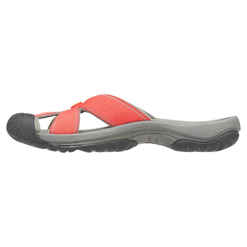 Slide sandal featuring protected toe and quick-dry upper with decorative logo button at center