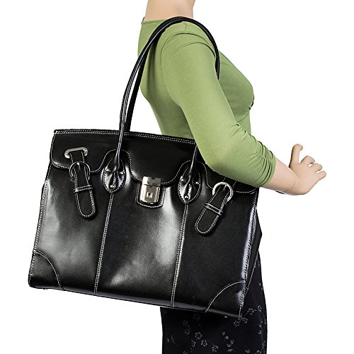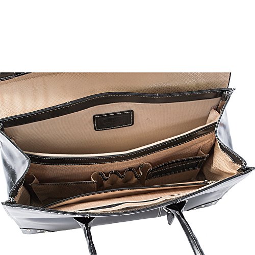 Flap over main compartment secures with magnetic snap. Front organizer section with space for media devices; secured interior zipper pocket for important documents. Built-in padded laptop compartment fits laptops up to 15.4". Tubular over the shoulder straps.Feature