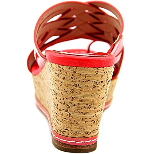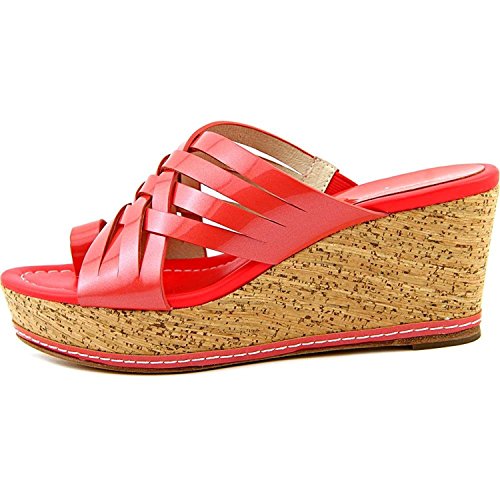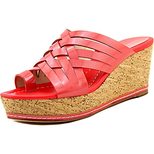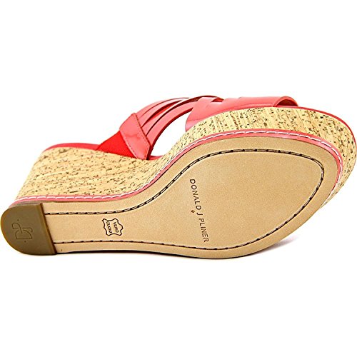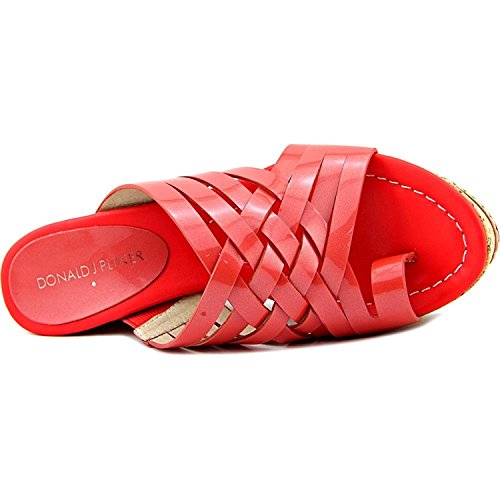 Binding : Apparel Product Description These platform slide-on sandals by Donald Pliner bring fabulous style to your daytime look. Fabric content and colors include: Patent leather in coral Textured metallic leather in silver Round open-toe slide-on sandals with strappy crossover detailing and toe ring Cork wedge 2-3/4" heel, 1-1/2" platform, feels like 1-1/4" heel Patent leather or textured leather upper; manmade sole 0
