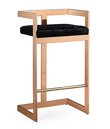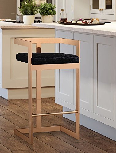 -. Title : TOV Furniture The Marquee Collection Modern Style Velvet Upholstered Kitchen Dining Barstool with Rose Gold Base, Black