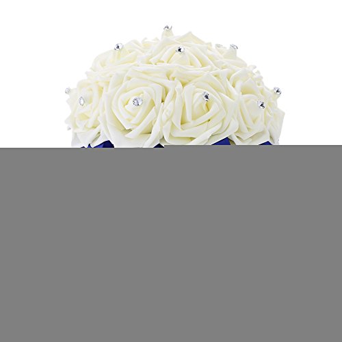 Fashion design, the handle is wrapped in satin ribbon and decorated with Rhinestone pearls. High quality, Hand craft, Gorgeous rose bouquet for wedding party.