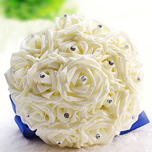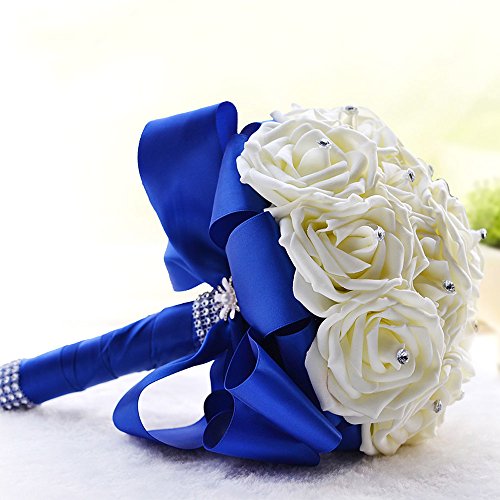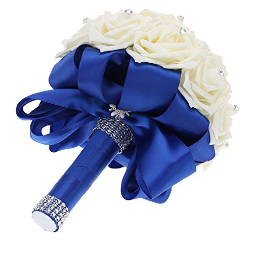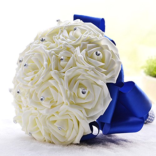 Artificial Wedding Bouquets Hand made Flower Rhinestone Bridesmaid Crystal Bridal Wedding Bouquet de mariage (Blue)