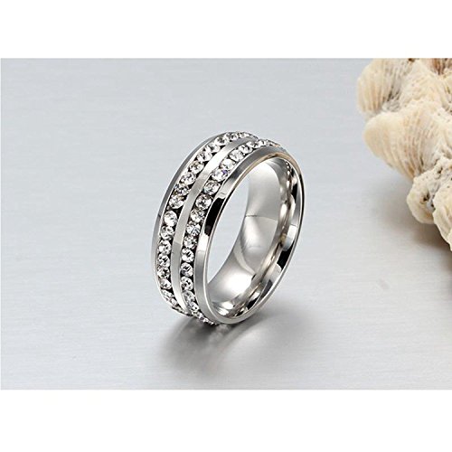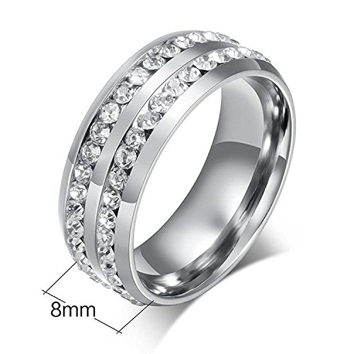 -. Title : Chryssa Youree Mens Womens 8MM Titanium Stainless Steel High Polished Cubic Zirconia CZ Promise Engagement Band Wedding Ring Size 6 to 12 (SZZ-021)