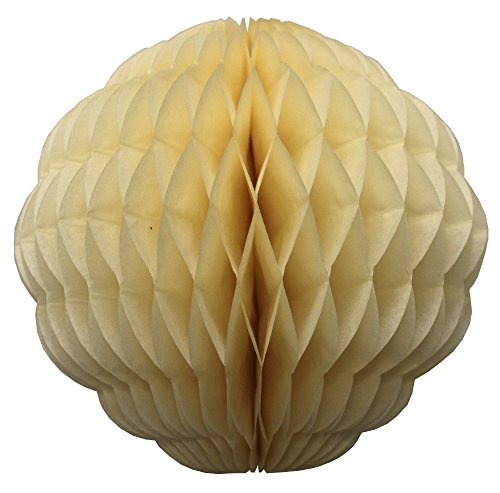 Studio : Devra Party Publisher : Devra Party Binding : Health and Beauty Product Description Decorate themed parties, events, and displays with these large 14 inch solid classic ivory (pastel) honeycomb puff balls with a scalloped design. The balls ship flat and come with an attached hanging string, so setting up your party decor is a breeze! These huge honeycomb balls are perfect for decorating large spaces or hanging from high ceilings, such as in auditoriums, cafeterias, churches, and wedding halls. Made in the USA by Devra Party. 0