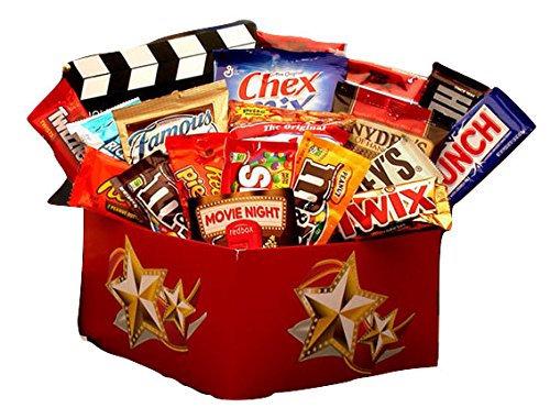 -. Feature : Red Box movie gift card good for 6 movie rentals / Directors Cut board - Twizzlers licorice - Reese's peanut butter cups - Rice Krispie treat / Plain M & M's candies - Peanut M & M's candies - Reese's Pieces - Twix Bar - Hershey's classic milk chocolate bar - Hershey's Cookies N cream bar - Nestle Crunch Bar / Snyder's Pretzels - Chex Mix - 2 Butter flavor microwave popcorn - Cracker Jacks caramel corn with surP.R.Ise / Don't forget your gift message at checkout, check the "This is a gift" box