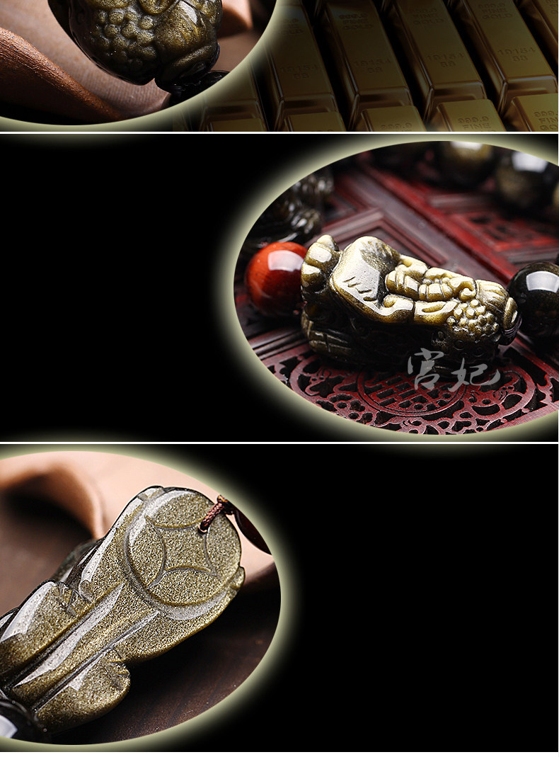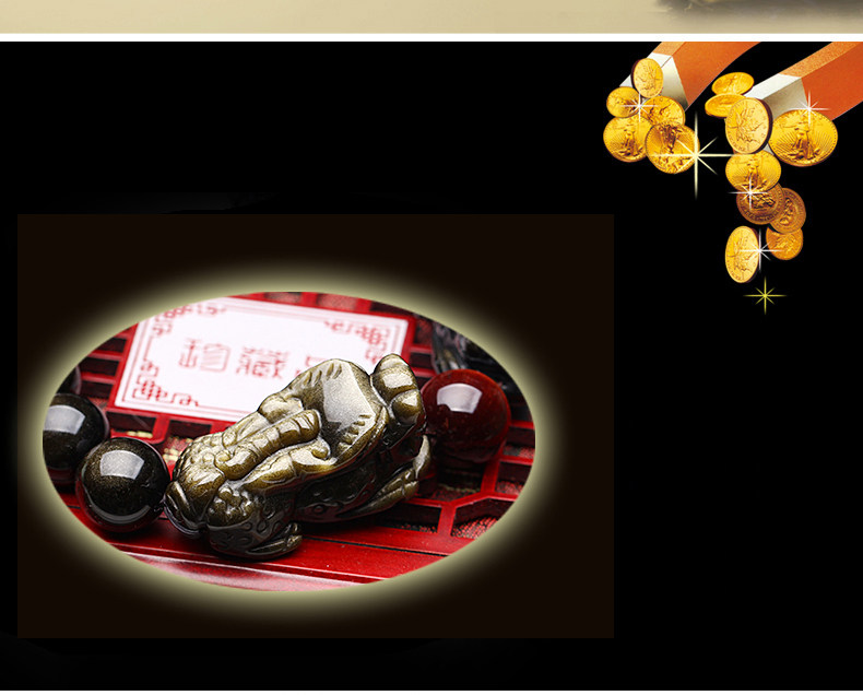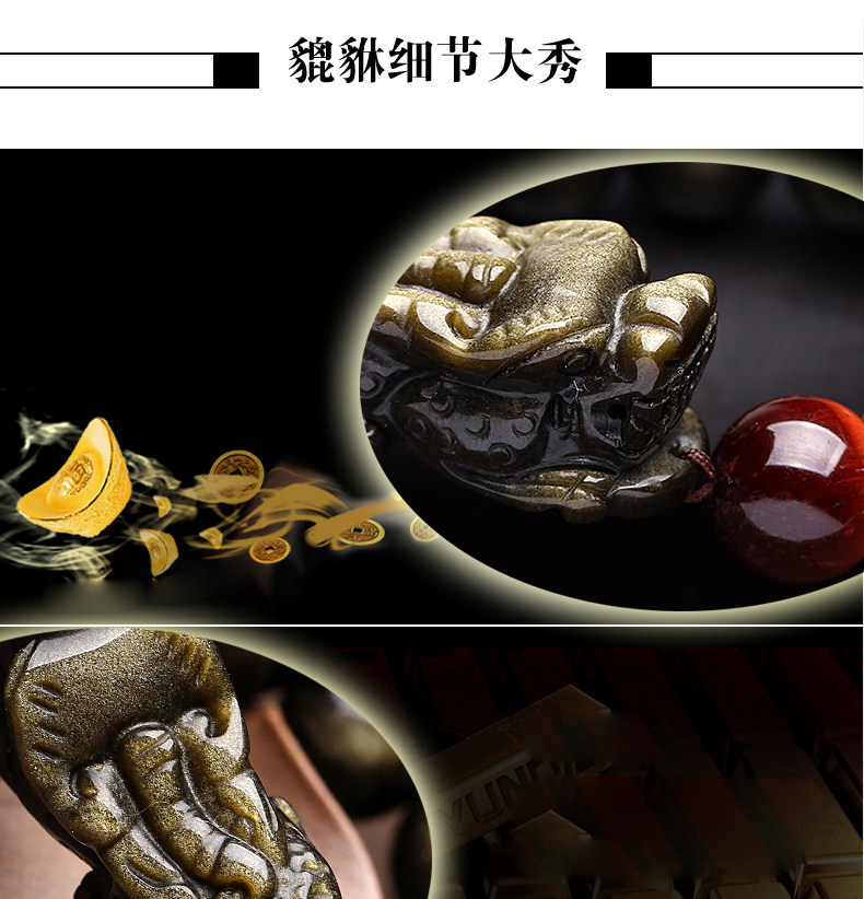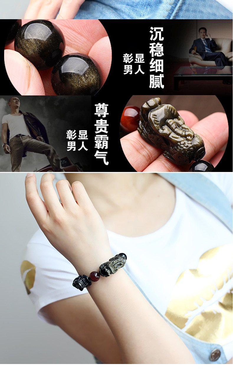 开光 天然水晶饰品 本命年 黑金曜石双貔貅手链 男款 礼物吉祥物