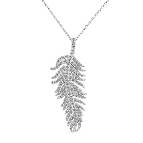 -. Title : EVER FAITH 925 Sterling Silver Pave Cubic Zirconia Bohemian Style Feather Pendant Necklace Clear
