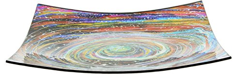 Border Concepts 14" Square Decorative Glass Plate with Multicolor Swirl Design