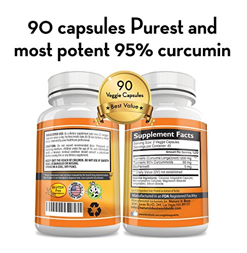-. Binding : Health and Beauty -. Brand : Nature is best -. EAN : 0821079313132 -. Feature : NO SECRET INGREDIENTS: The 60 (per bottle) turmeric curcumin capsules are 100% all natural! They contain Curcuma Longa Turmeric (AKA Zingiberaceae root), known from antiquity, with 95% curcuminoids concentrate, Bioperine, which is known for its beneficial contributions, Cellulose, magnesium and more. No secret ingredients - just a natural combo. / WHAT A SINGLE TURMERIC CAPSULE CAN DO FOR YOU: 1 turmeric capsule twice a day, taken half an hour before your lunch or dinner, is enough to provide you with all the elements missing from your organism.Curcumin allows your body to absorb all the necessary nutrients, in order to prevent poor health conditions, as it may also help in cell reconstruction, for a beautiful glowing skin. / SUPPORT YOUR SYSTEM: The ingredients the turmeric supplement consists of, are all natural. The good earth's finest elaborate fruits, which may successfully nourish your organism and refresh your good mood. A fine dietary supplement, that will allow you, to complete your diet, no matter your dietary habits - it may help your body deal with tireness for instance, since it provides the energy you need to get through the day. / BIOPERINE A PURE CONCOCTION: Bioperine enhances the turmeric curcumin's action, as their combination (curcuma & black pepper) supports the good functionality of your organism. Despite its usage as a spice, it has been used widely in India for long centuries as a diet fulfilling and mood improving source. / TURMERIC CURCUMIN-A HEALTH & ENERGY BOOSTER: Turmeric Curcumin is often used in medicine for its benefits. Being included in these turmeric capsules, it supports your organism with elaborate nutrients, to effectively resist in poor health inducing agents - Remember to use wisely - the turmeric supplement is not a drug, only a natural way to complete your dietary needs. -. IsAdultProduct : 0 -. Label : Health & Personal Care -. Manufacturer : Health & Personal Care -. MPN : Turmeric-60 -. PackageQuantity : 1 -. PartNumber : Turmeric-60 -. ProductGroup : Health and Beauty -. ProductTypeName : HEALTH_PERSONAL_CARE -. Publisher : Health & Personal Care -. Studio : Health & Personal Care -. Title : Nutritional Turmeric Supplements With Bioperine -Best Turmeric Curcumin 100% All Natural Veggie Capsules - Organic Dietary Complex To Sustain Energy Levels And Bring You A Better Mood -. UPC : 821079313132