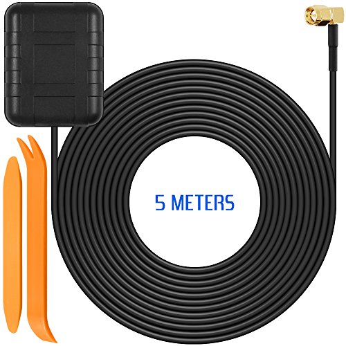 GPS Active Antenna with 5 Meters Cable for In-Dash Navigation Receiver, SourceTon SMA Male Plug Aerial Connector for Car DVD GPS Head Unit Stereos, BONUS 2 pcs of No-Scratch Auto Trim Removal Tool Kit