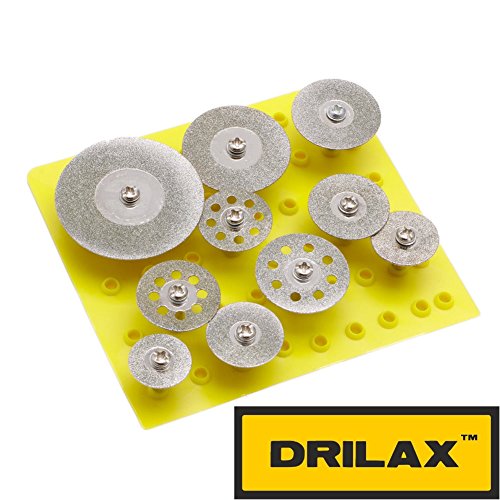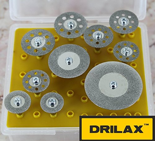 DRILAX 10 pcs Diamond Coated Saw Cut Off Discs Wheel Blades Rotary Tool Set Shank for Dremel