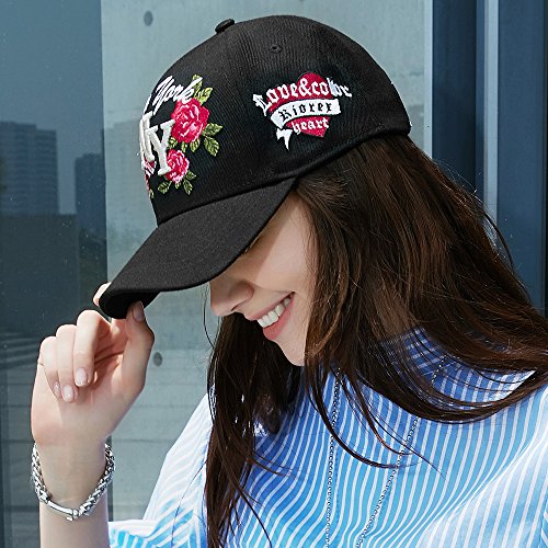 -. Title : Riorex Baseball Cap Women Rose Embroidery Cute Hat Floral Baseball Cap Adjustable