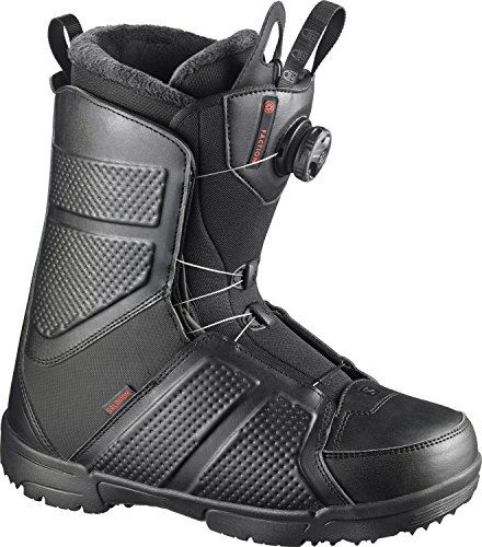 Studio : Salomon Snowboards Publisher : Salomon Snowboards Binding : Misc. Product Description Spend less time fumbling with laces and more time shredding with your friends! The Salomon Faction Boa mena€TMs snowboard boot has a quick and easy Boa Coiler system to get you dialed in and on the snow faster. Along with Boa Coiler closure the Faction features an Internal Lace Locker to get the perfect amount of liner tension that holds all day long. Getting locked into your boots quickly is nice but comfort is king and the Faction offers plenty. The Silver Fit liner is heat moldable for a custom fit and houses ultra cush Otholite® C1 Footbeds. 0