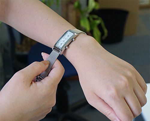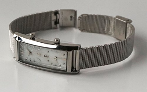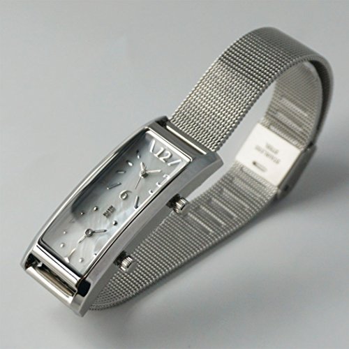 -. Feature : 今回はシルバーのメッシュバンドに合わせるため、ケースもシルバーにしました。スライド式バックルのためご自身でバンド調整を簡単に行えます。 / ■サイズ ケース:縦47×横19×厚9mm ■重さ:45g / ■素材  ケース:ブラス(真鍮)、バンド:ステンレス 風防:ミネラルガラス、貝パール文字盤 / ■仕様・機能 日本製クオーツムーブ、日常生活防水、デュアルタイム表示 / ■その他 1年保証 企画:日本 生産:中国