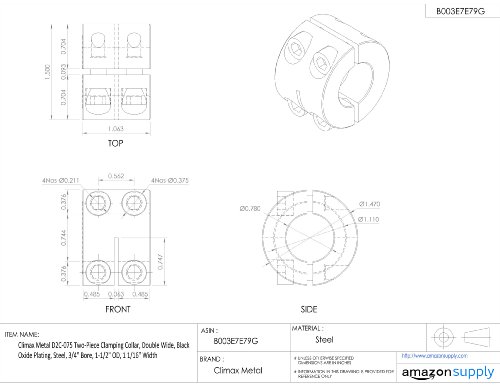 Climax Metal D2C-075 Two-Piece Clamping Collar, Double Wide, Black Oxide Plating, Steel, 3/4" Bore, 1-1/2" OD, 1 1/16" Width